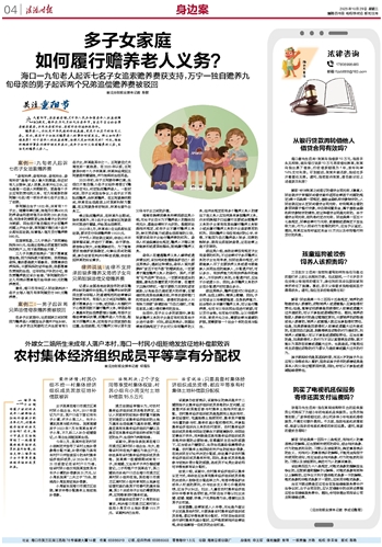 ~~~海口一九旬老人起诉七名子女追索赡养费获支持,万宁一独自赡养九旬母亲的男子起诉两个兄弟追偿赡养费被驳回