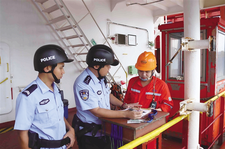 “我们加强口岸限定区域巡查,保障查验、装卸、换班等环节衔接顺畅,确保首航任务安全高效完成。”洋浦出入境边防检查站执勤二队队长李之雄介绍。(法治时报全媒体记者 杨晓晖 通讯员 陈晟文 吴岳)