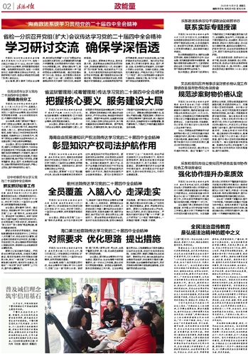 要结合实际抓好贯彻落实。找准检察履职服务党委政府中心工作的切入点和着力点,依法全面充分履职,结合海南自贸港封关运作实际,抓好重大风险防控工作;结合海南热带雨林国家公园建设实际,持续深化生态检察官综合履职机制。