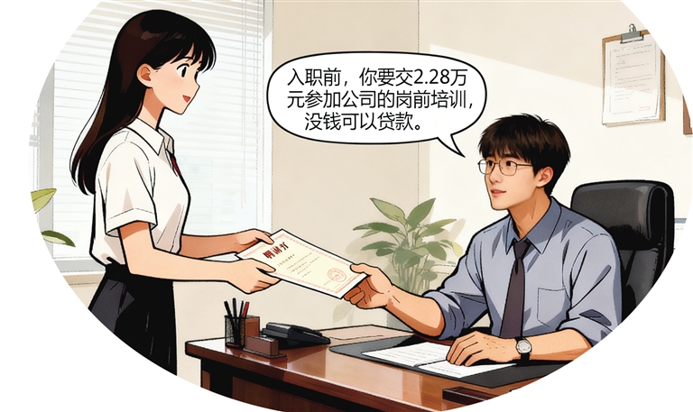 陈巧介绍,根据《中华人民共和国劳动合同法》第九条明确规定:“用人单位招用劳动者,不得扣押劳动者的居民身份证和其他证件,不得要求劳动者提供担保或者以其他名义向劳动者收取财物。”这意味着,任何以“岗前培训费”“入职押金”“服装费”“设备费”等名义向求职者收取费用的行为,均属违法行为。若用人单位进一步诱导求职者办理“培训贷”“助学贷”等金融产品来支付所谓“培训费”,则可能涉嫌合同诈骗或非法集资等刑事犯罪。