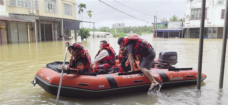 11月4日14时26分,海口消防救援支队特勤大队一站接到增援指令,火速赶赴琼海市新海路与银河路交叉口东北1200米处处置积水险情。消防救援人员先后于15时11分、15时25分完成两批救援,成功转移6名被困群众,用跨城担当守护生命安全。(法治时报全媒体记者连蒙/文 海口消防/图 )