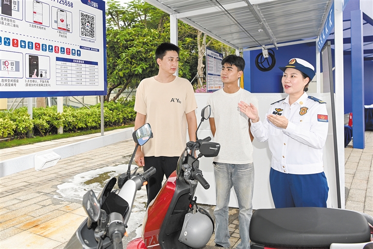 他们以“铁腕”治隐患,守住“家门口的安全”。针对电动自行车火灾这一“心腹之患”,支队创新推行定期研判、调度通报、清单推进、挂图晾晒、督导问效、宣传曝光等六项工作机制。11月6日的海口市“119”消防宣传月新闻发布会上公布:今年已发生了82起电动自行车火灾,同比去年(90起)下降13.7%,未造成人员伤亡,直接财产损失约110.9万元。海口市美兰区瑞州嘉园小区电动自行车棚“9·26”火灾发生后,物业安保人员迅速到场处置,利用拖钩将临近未起火的车辆拖离,同时该车棚内设置的消防设施及时动作,分组分隔措施发挥作用阻断火势蔓延,仅8辆电动自行车过火,有效保护了车棚内其他47辆电动自行车安全和避免火势蔓延扩大,值得各物业单位推广学习借鉴。