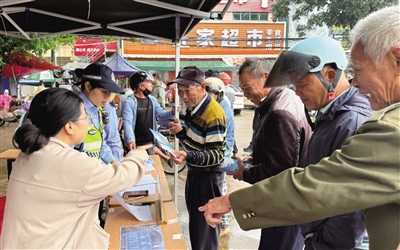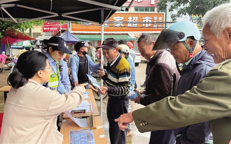 11月5日,临高县公安局整合交警、派出所警务资源,联动当地电动自行车经销商,在博厚镇统筹开展“流动车管所”便民利民服务活动,解决乡镇群众办理车驾管业务“跑远路、耗时长”的难题。
