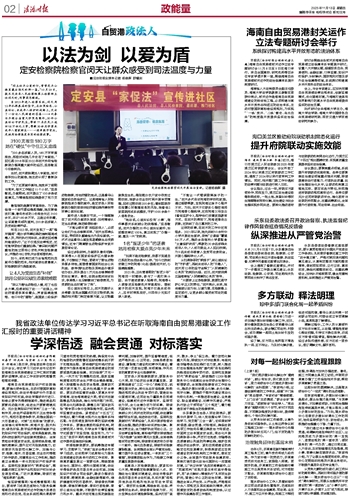 会上,与会专家建议,应加快完善自由贸易港法律法规体系,创新监管模式,优化营商环境,为海南打造具有世界影响力的高水平自由贸易港提供坚实的法治支撑。
