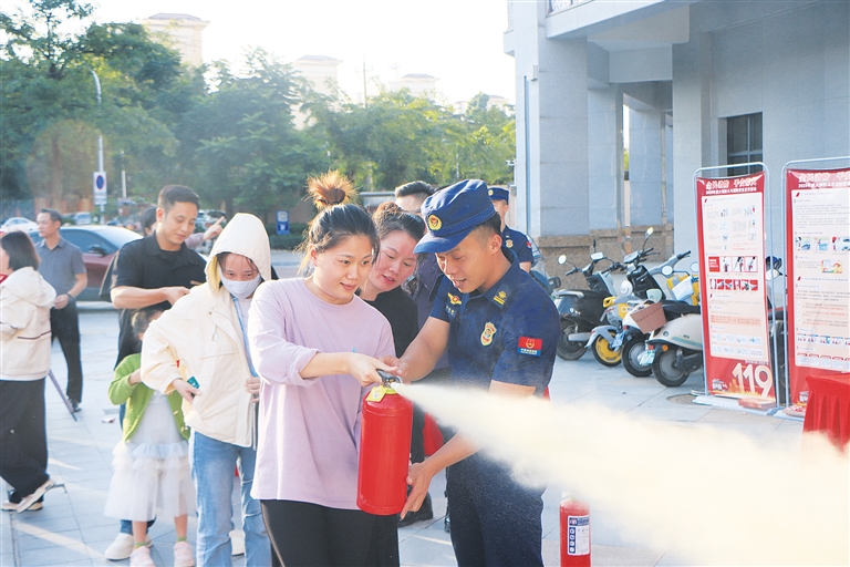 11月12日,儋州市消防救援支队联合那大镇政府在城北社区开展“全民消防平安那大”主题宣传活动,将消防知识送到居民家门口。