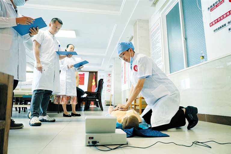 技能比武环节紧扣监狱场景特点,设置心肺复苏、止血与包扎、海姆立克急救法、留置导尿等八项实战科目,模拟罪犯突发疾病、意外受伤和日常诊疗等场景。