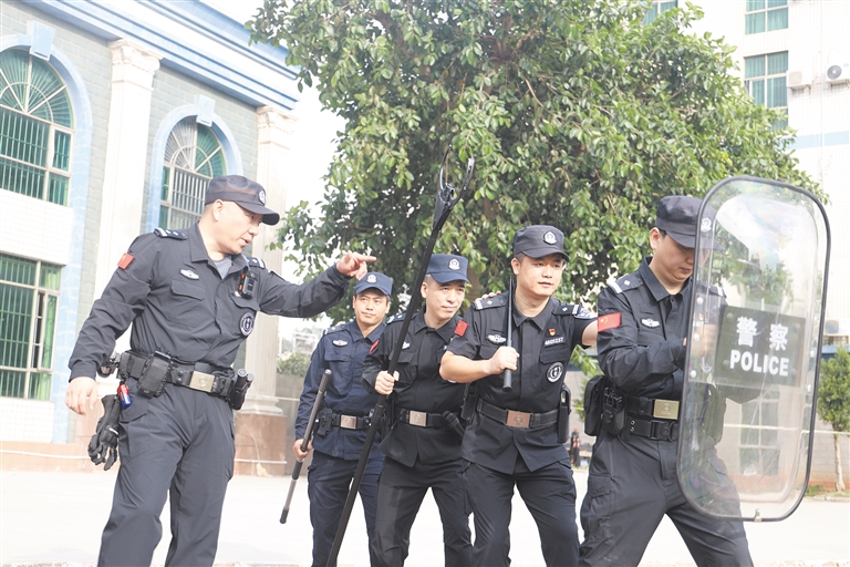 训练以警组协作战术为核心,重点设置最小作战单元处置、警棍盾牌协同运用、约束叉操作与徒手控制等多个科目,并定期逐一考核。通过模拟实战场景,系统演练警组配合流程与战术技巧,强化协同反应与现场控制能力。在专项训练环节,组织警棍盾牌攻防配合演练,提升队员在对抗中的快速处置能力;同时开展警用约束叉使用及徒手控制实战化训练,增强在复杂环境下一招制敌、规范控制的专业技能。