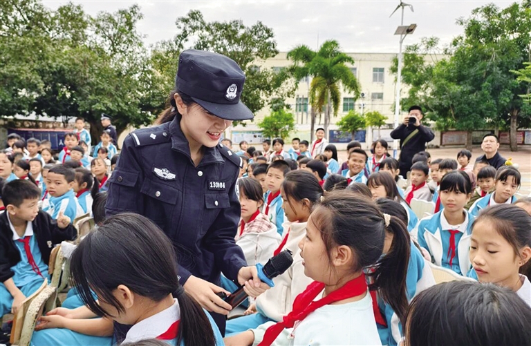 近日,临高县第二期少年警校工作启动,一场集知识宣讲与职业体验于一体的安全教育与实践盛宴,在临高多所中、小学同步展开,通过“宣讲+实践”的模式,在青少年心中播下法治、安全的种子。此次活动由临高县公安局、团县委、县教育局、县消防救援大队及县关工委联合主办。活动中,民警围绕交通安全、预防未成年人犯罪、反电诈、禁毒等主题开展宣传教育,引导学生树立正确法治观念。同时,“少年警察”到4个警务实战点位,进行“沉浸式”体验。(法治时报全媒体记者 王小亮 通讯员 王晴)