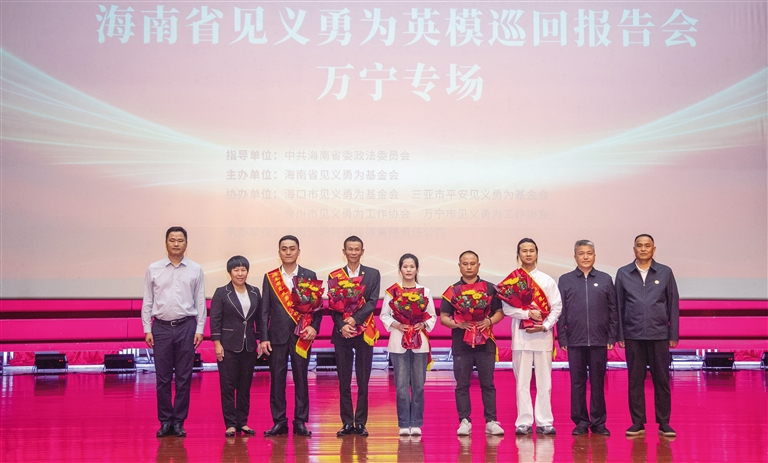 11月26日15时许,万宁市多功能活动中心内掌声阵阵、暖流涌动——“大义自贸港 为勇者喝彩”海南省见义勇为英模巡回报告会万宁专场开讲。