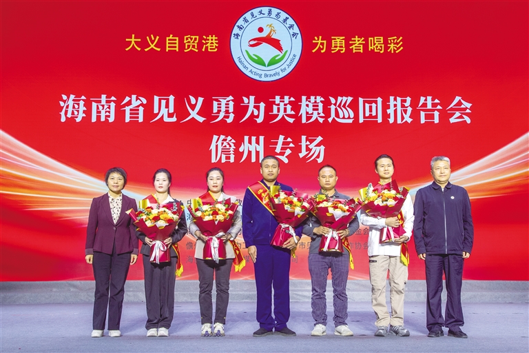 11月27日15时许,“大义自贸港 为勇者喝彩”海南省见义勇为英模巡回报告会第三场在儋州市开讲。