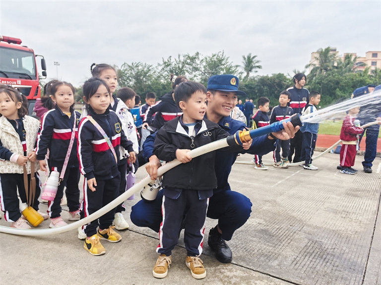 近日,文昌市消防救援支队举办消防站开放日活动,邀请辖区150余名师生走进消防站,沉浸式体验学习消防安全知识。