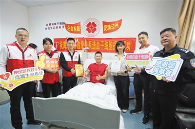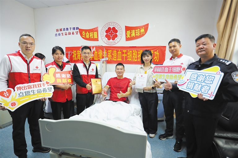 12月1日上午,在海口市人民医院血液科细胞采集室内,医用采集仪器的嗡鸣声轻柔回荡,透明的导管中,带着体温的血液缓缓流转。三亚市公安局经济犯罪侦查支队民警吴小将躺在病床上,手臂上扎着采血针,目光不时望向造血干细胞采集袋。
