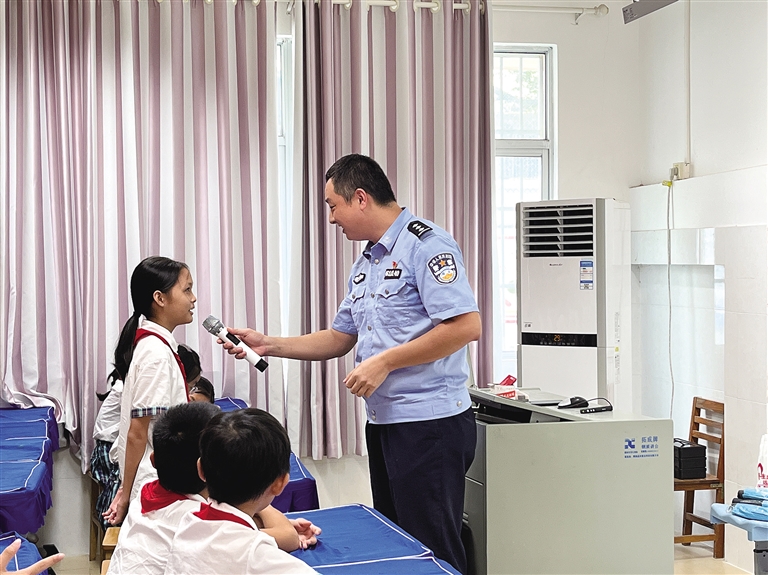三亚市公安局吉阳分局创立护苗普法宣传队,打造出一系列“孩子喜欢、效果显著”的特色活动,在校内开展普法班会课、校园广播站播放普法宣传音频,并分年级分主题组织开展“预防未成年人犯罪”演讲比赛、“莫沾毒品 莫交毒友”绘画比赛等活动。
