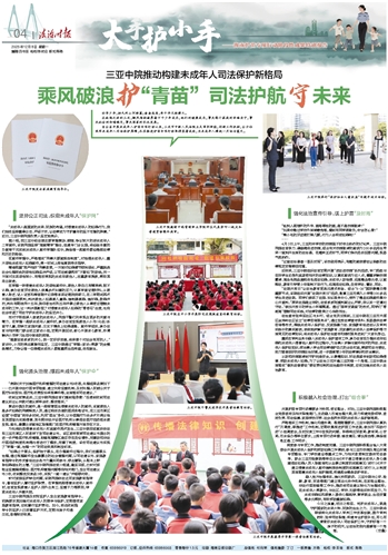 今日之孩童,明日之栋梁。呵护未成年人,就是守护国家的未来火种、民族的生生之力。三亚中院将持续深化未成年人审判工作改革创新,提升审判质效、延伸司法职能、构建专业护苗队伍,用心用情做好未成年人司法保护工作,守护好每一个孩子的明天,让法治的阳光温暖每一个角落。(世鑫)
