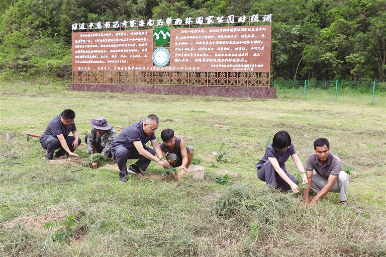 8月15日,在全国生态日来临之际,白沙法院以党建为引领,联合海南热带雨林国家公园管理局鹦哥岭分局等,前往海南热带雨林国家公园生态修复基地。海南二中院环境资源审判庭庭长潘心情、白沙法院审判委员会专职委员卓廷龙对3起环境资源案件中的3名被告人,异地补植复绿进行现场指导监督,确保补植复绿生态修复落实到位。通过恢复性司法,让“破坏者”变成“修复者”。