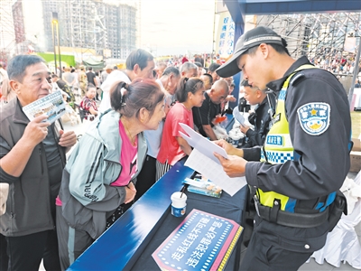 “请大家有序入场,不要拥挤。注意保管好随身物品,守好自己的‘钱袋子’!”在赛事入口处,负责安保的民警王奂堂手持扩音器,一边疏导人流,一边送上贴心的提醒。