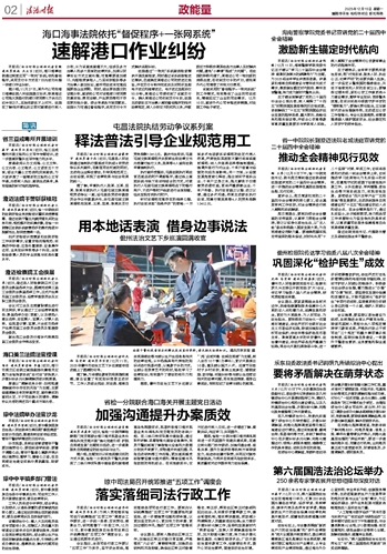 本报讯(法治时报全媒体记者陈敏)12月11日,海南警察学院党委书记庄才德以“学习二十届四中全会精神 凝聚民族复兴的磅礴伟力”为主题,为2025级全体学生讲授思政课。讲课紧扣海南自贸港建设与青年成长成才需求,激励新生锚定时代航向、铸牢忠诚警魂,努力成为新时代警务尖兵。