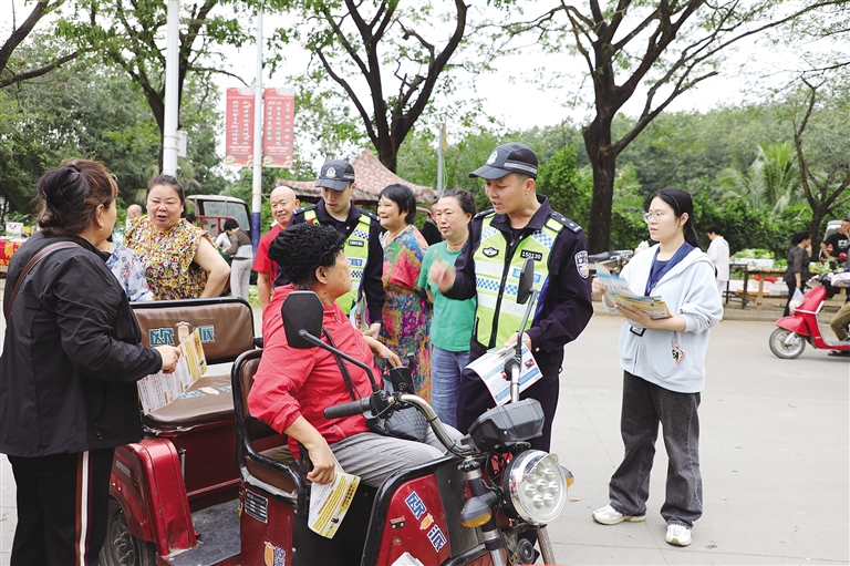 近日,白沙黎族自治县公安局联合司法局、综合行政执法局等组成宣传小分队,到邦溪镇“候鸟”小区开展交通安全普法宣传活动。