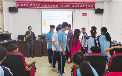 在临高县和舍中学,她是学生口中亲切的“张校长”。“面对未成年人,要用他们喜爱的方式普法。”她常结合社会热点,关联民法典、刑法等相关法律法规,设计“击鼓传花答问题”“法律知识小竞赛”等趣味环节,将防欺凌、防诈骗、未成年人自我保护等知识融入游戏,让学生在欢声笑语中学会用法律保护自己。