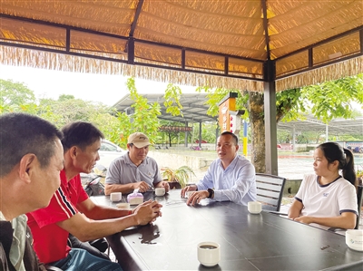 “我自己都过得不好,哪里有能力赡养老人……”12月1日15时20分许,在万宁市南桥镇桥北村“咖啡议事厅”里,咖啡香气袅袅升起。村民们在南洋风格的草亭里围坐着,一边喝咖啡,一边谈自己的想法,身后传来熟悉的乡音:“昨天你们问的赡养费问题,我来跟你们掰扯掰扯。”说话的是“法律明白人”王有光,他揣着准备好的普法资料,和村民聊了起来。