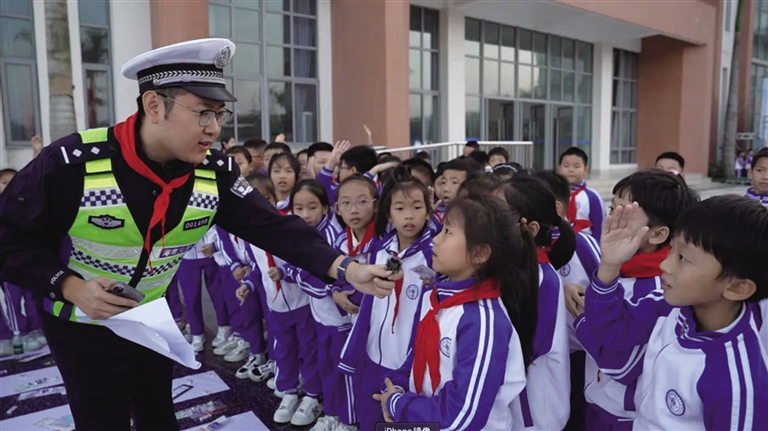 “小朋友,坐车也要戴头盔哦!”清晨7点半,万宁市第二小学门口的护学岗上,民警李华的额角渗着汗珠,却依然耐心地提醒每一位坐电动自行车的学生。这个设立在全市97所学校的“护学岗”,每天上下学时段都有民警、辅警提前30分钟到岗,守护着孩子们的平安路。