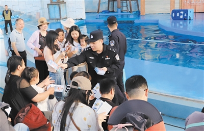 12月18日,省公安厅反走私和海岸管理总队第七支队联合儋州市打私办,将反走私普法“搬进”海花岛海洋乐园景区。