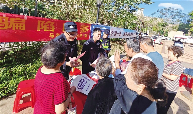 12月21日,临高县公安局马袅海岸派出所在辖区恒大·御海天下小区,借助小区物业开展“冬至送饺子”便民活动时机,开展反走私和防范电信网络诈骗集中宣传活动,提高群众对反走私工作的认知度,增强群众防诈意识和能力。