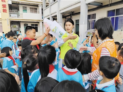 波莲中心学校法治副校长王晓航围绕“诈骗是什么”以及“常见诈骗类型”展开讲解,普法宣传员向学生分发宣传折页以及法律援助指南等资料,鼓励学生争做“家庭反诈小宣传员”,将所学到的知识带回家中,共同构筑起家庭、校园联动的反诈防护网。