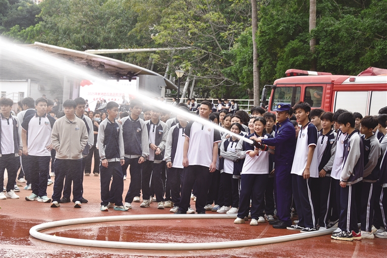 近日,海口市龙华区消防救援大队应邀为海南省银行学校2000余名师生开展灭火实操演练活动。该大队宣教员结合校园常见火灾隐患,讲解如何预防火灾、发生火灾如何正确处理、厨房和化学实验室发生火灾处理方法以及校园内险情发生时应急疏散方法等,随后开展校园消防演练。师生们现场体验了灭火服试穿、逃生帐篷、高压水枪出水等项目,活动现场气氛热烈。