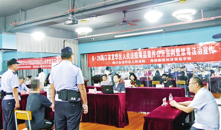 “梁某某贩卖含有依托咪酯成分的电子烟弹,构成贩卖毒品罪!”在海南旅游经济贸易学校的礼堂内,一场巡回审判正在进行。当日,刑事审判庭将庭审现场“搬”进校园,以“巡回宣判+法治教育”的模式,为该校师生上了一堂深刻的禁毒普法课。宣判后,张琳琳结合案例剖析毒品危害,提醒学生坚守法律底线。