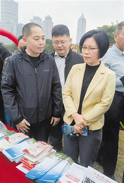 我们着力培育专业化、品牌化的普法队伍,打造“于大伟调解工作室”等一批品牌调解室,发动社会力量新建“小英说理”“法护自贸”等志愿普法队伍,尝试“宣讲+VR”“宣讲+脱口秀”等模式,让普法宣讲更接地气、更有温度。