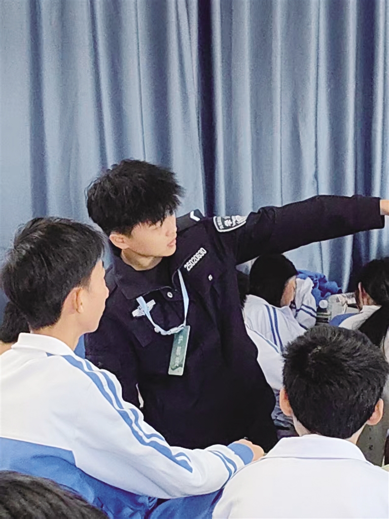 在中学阶段,学校面临的不只是法治意识薄弱的问题,更有青春期心理困扰、学业动力不足、家庭教育缺失等多重挑战。简单的法律知识灌输往往治标不治本。在灵山中学,有班主任向护航员反馈,有学生开始主动求助,询问“如果被威胁了该找谁”等具体问题。在课堂互动中,护航员们也直面了学生们基于现实困惑的尖锐提问,诸如“考不上高中怎么办”“现在学了有什么用”等直接叩问教育价值的难题。这些互动表明,中学生渴望的不仅是规则条文,更是在复杂现实中辨别是非、寻求保护的具体路径和可信赖的成人支持。