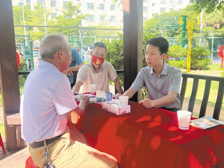 “在咱们乐东,茶亭就是乡亲们的‘信息交流站’,不管是邻里矛盾还是生活难题,大家都爱凑在茶亭里聊一聊。”作为土生土长的乐东人,李慧秀深谙家乡人爱喝茶、爱聊天的习惯。工作之余,他会不定期出现在公园茶亭或社区茶室,喝茶聊法,用最接地气的普法方式,让晦涩难懂的法律条文在袅袅茶香中变得温暖而鲜活。