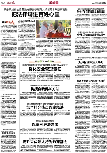 吉海:我们以“核心法律强渗透、特色形式引共鸣、节点宣传广覆盖”为亮点,打造了“文艺+普法”“方言+普法”“文旅+普法”等一批特色普法模式,让法律走到群众身边、走进群众心里。