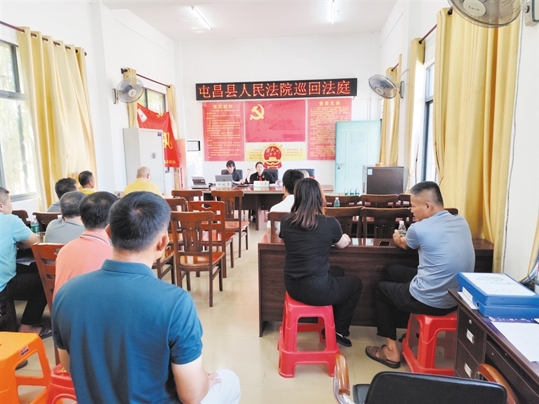 屯昌法院秉持“深入群众、方便群众”的理念,将审判重心下移,就地解决纠纷,3个法庭选择典型案件深入到乡村、社区、企业等地开庭审理,截至2025年10月份,已开展巡回审判101次,实地化解了一批矛盾纠纷。