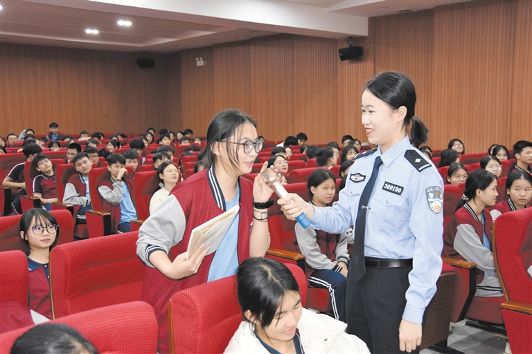 讲座中,民警紧扣新修订的治安管理处罚法中涉及未成年人的条款展开,以案释法,帮助学生清晰认识法律赋予的权利、划定的行为边界,提升学生法治意识。鲜活的案例、生动的讲解,让学生听得聚精会神。在互动问答环节,学生们踊跃发言、积极交流。