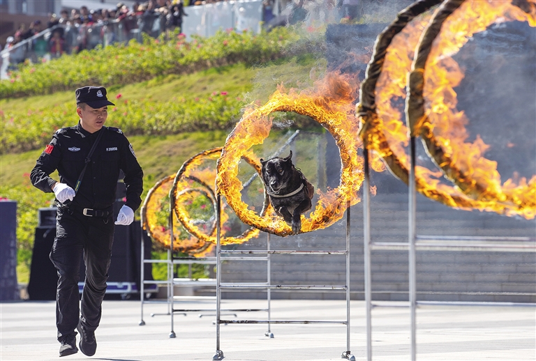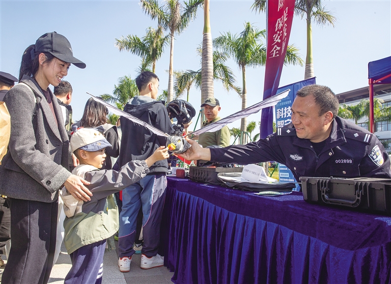 特警盾牌战术操练、警犬综合技能展示、无人机飞行演练……在警营开放日活动现场,精彩节目轮番上演,赢得掌声阵阵;警务装备展示吸引眼球,让参观的群众直呼“过足瘾”。同时,现场还设置了法治宣传区域,通过发放宣传手册结合有奖知识竞猜等形式,吸引群众踊跃参与。