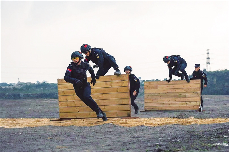 据了解,此次挑战赛共设有快速射击、解救人质、追捕突击、110米越障和综合体能5个实战科目。在综合体能科目中,海岸特警队员们突破生理极限,攀爬、跨越等动作规范利落,尽显顽强拼搏的过硬作风;在追捕突击科目中,队员们默契配合、战术娴熟,高效完成各项实战化任务。
