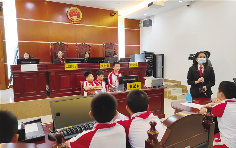 AI主播“检小花”的到来,让法治课堂变得生动有趣;16名校外法治辅导员走进校园,用孩子们喜闻乐见的方式讲解法律知识;模拟法庭,让法治的种子在孩子们心中悄悄发芽。