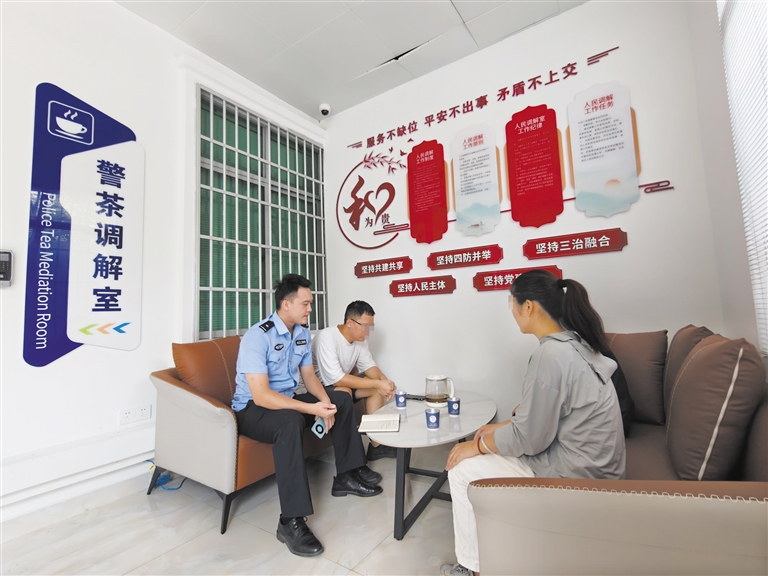 “一杯凉茶消火气,一番调解化矛盾。”在崖州湾科技城派出所,有一间温馨的“警茶调解室”,如今已成为化解矛盾的阵地。在这里,调解员递上清热解暑的凉茶,用情感人、以理服人,联动区综治中心、司法局等部门工作人员,借助法院线上调解终端,实现矛盾纠纷一站式化解。