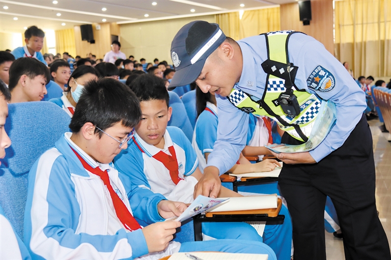 “红灯停,绿灯行,安全头盔要戴紧;斑马线,仔细看,货车盲区别靠近……”在屯昌县文体公园的“平安集市”上,孩子们围着交通安全知识摊位踊跃抢答,清脆的童声与欢快的笑声交织在一起。这是2025年以来海南交警深入推进护苗专项行动的一个生动缩影。为守护未成年人出行安全,助力平安建设考核提质增效,海南省公安厅交通管理总队牵头,联合教育、乡镇政府等多方力量,构建起“宣传润心、执法护行、源头防控、科技赋能、联动共建”的全方位交通安全防护体系,以实打实的举措为全省青少年撑起平安成长“保护伞”。相关工作成效显著,涉中小学生的交通违法不断下降,2025年同比下降了24%,校园周边道路交通秩序持续好转,涉未成年人道路交通死亡事故起数和死亡人数分别同比下降13.2%、17.1%;全年开展各类交通安全进校园宣传活动872场,有力夯实了校园交通安全基础,交出了一份沉甸甸的平安答卷。