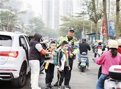 针对校园周边交通拥堵、违法停车等突出问题,海南交警依托“一校一警”警务模式,联合家长、交通志愿者等力量,实行“1+N”护学模式,加强对校园周边停车、通行秩序维护,引导学生安全过街,目前城区中小学校“护学岗”设置率已达100%,护学力量持续增强;聚焦上下学通道交通拥堵、人车冲突等问题,推动完善学校区域警告标志、机动车限速标志、禁停网状线、过街设施、信号灯等“五类”基础管理设施,全力确保上下学通道通行安全畅通。