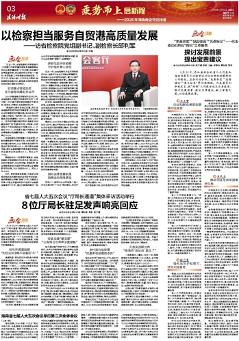 第003版:乘势而上启新程——2026年海南两会特别报道