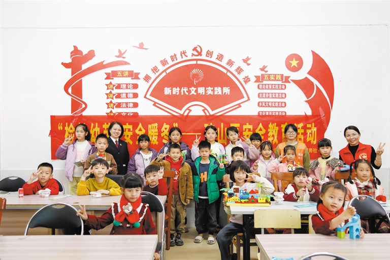 “现在请大家分组,用积木搭出你们心中的‘安全场景’,还要说出里面的安全小细节哦!”在龙塘镇新时代文明实践所,随着社工的话音落下,6组孩子立刻围拢在积木桌前,你一言我一语地讨论着,并开始拼装搭建。40分钟的拼搭时间里,孩子们全程专注,完成后更是踊跃举手分享,原本抽象的安全知识,变成了看得见、说得出的具体场景。