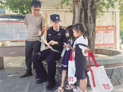 这是海口铁路公安处东方车站派出所开展的“送安全进万家”普法宣传活动。宣传民警带着普法宣传册,走进一个个村庄,通过发放普法宣传册、现场解答、以案说法等生动形式,向村民讲解维护铁路运输安全的重要性。(法治时报全媒体记者 董林)