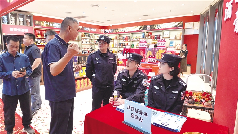 “为了方便想要购买免税品的消费者,我们特别开展了居住证业务办理前置工作,在免税店门口设置了咨询服务台,为消费者提供居住证办理咨询服务。”金宇派出所民警王仕坤介绍。