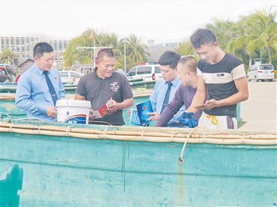 近日,琼海市检察院潭门海洋检察室联合该市海洋和渔业行政执法大队、市渔政服务中心、清澜海事局琼海海事处等单位,集中开展渔业安全生产联合检查与法治宣传,把安全监管与法律服务送到渔港、送到船头。