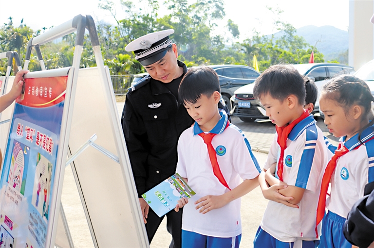 | 3月2日,乐东黎族自治县公安交警进学校开展宣传活动,引导学生们自觉遵守交通法规。(省公安厅供图) |