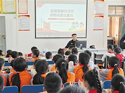 | 3月2日,三亚市公安局吉阳分局大东海派出所社区民警到临春小学开展法治宣传。(省公安厅供图) |