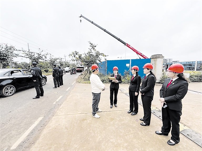 3月5日上午9时30分,执行队伍抵达工地现场。警灯在工地旁醒目亮起,法警迅速行动,拉起警戒线。